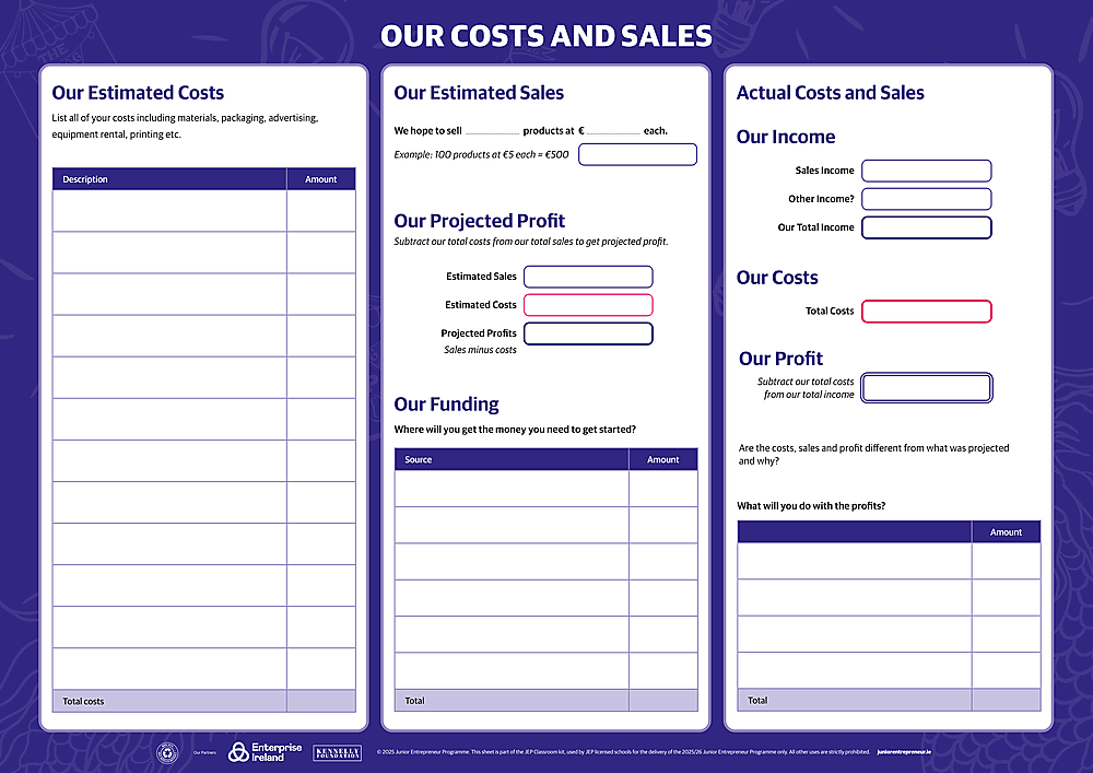 The participants work in their teams to turn their idea into reality by producing, costing and promoting their product/service.